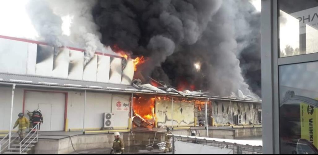 По предварительным данным, огонь вспыхнул в одном из складских помещений на улице Жаз. Для ликвидации возгорания привлечены семь пожарных машин. В 8.08 огонь удалось локализовать. Пожарные продолжают работать на месте ЧП.
