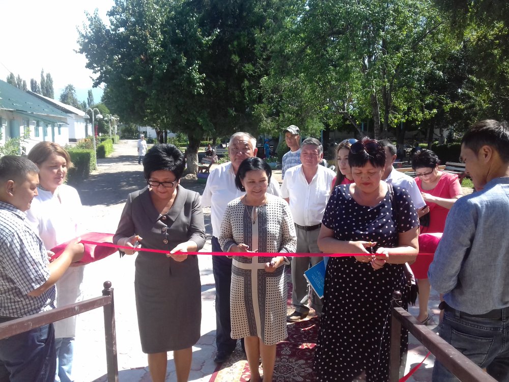 Традиционную красную ленточку разрезали министр труда и социального развития Таалайгуль Исакунова, председатель Общественного фонда «Жароокер» Гульнара Сыдыкова. Выражая слова благодарности спонсорам и вручая Почетные грамоты Министерства труда и социального развития КР, министр подчеркнула, что новая столовая построена оперативно.
