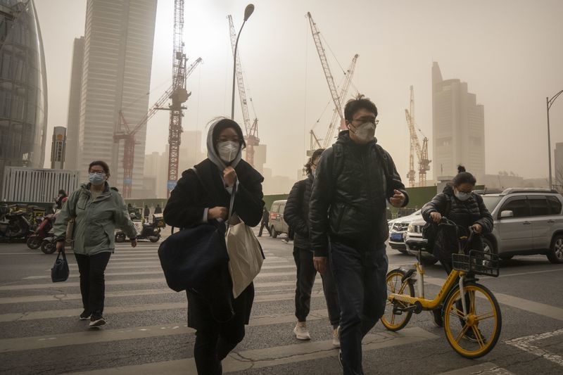 На китайскую столицу Пекин обрушилась мощная пыльная буря. Для города она стала третьей по счету в марте, сообщает Bloomberg.