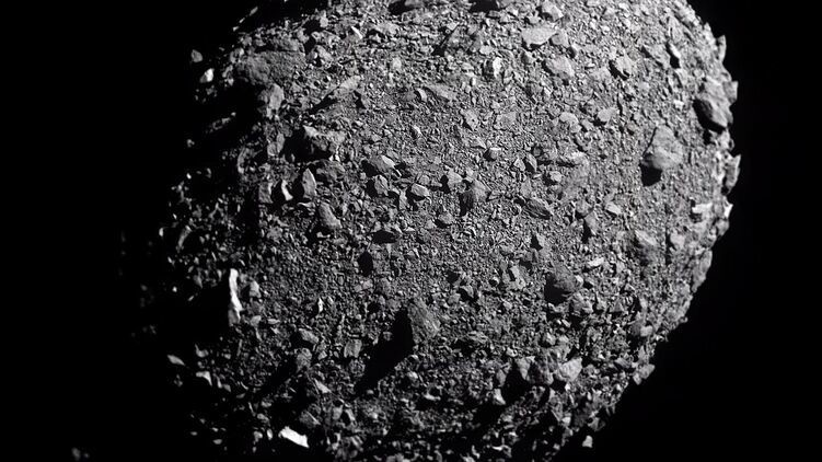 Зонд DART намеренно столкнулся с астероидом Диморфос (ширина - 160 метров), в результате чего в нем образовался кратер. Из обломков породы астероида образовался кометоподобный шлейф из пыли, протянувшийся на несколько тысяч километров.