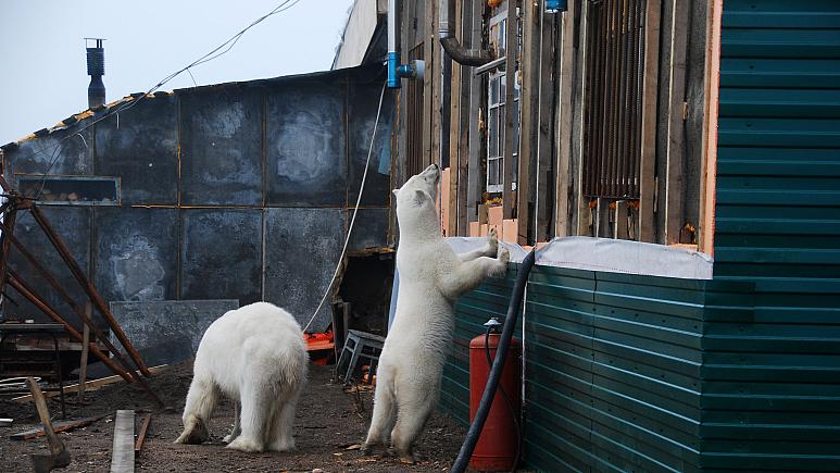 Увидеть белого медведя на окраине села для жителей чукотского Рыркайпий, расположенного на берегу Ледовитого океана, почти обычное дело. В последние годы животные появляются там каждую зиму в поисках пищи. Обычно охотящиеся на морских животных, обитающих на льдинах, теперь они вынуждены искать пропитание на побережье.