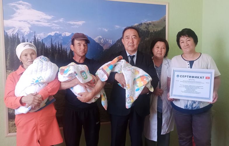 При рождении тройни государством предусмотрена единовременная выплата — по 50 тысяч сомов за каждого ребенка. «Семья Абдылдаевых получила 150 тысяч сомов», — добавили в Минтруда.