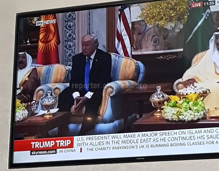 Флаг Кыргызстана на саммите был установлен рядом с флагом США согласно протоколу в алфавитном порядке: слева — флаги Казахстана, Катара, затем Кыргызстана, в центре — флаги США (главный гость) и Саудовской Аравии (хозяин саммита), и так далее.