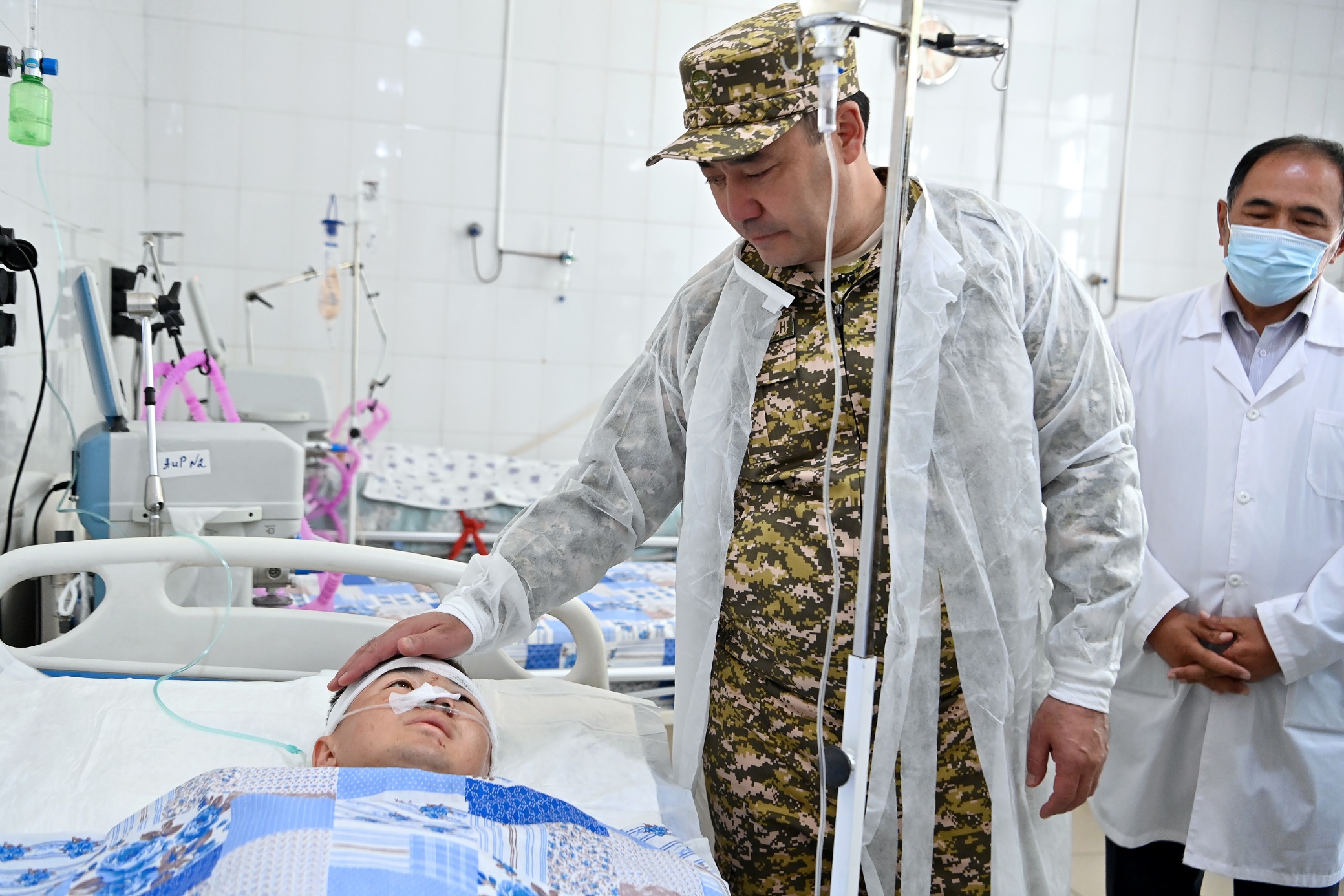 Президент Садыр Жапаров сегодня, 4 июня, навестил военнослужащих, получивших ранения в ходе недавнего приграничного инцидента с применением оружия на кыргызско-таджикском участке государственной границы в Баткенской области.