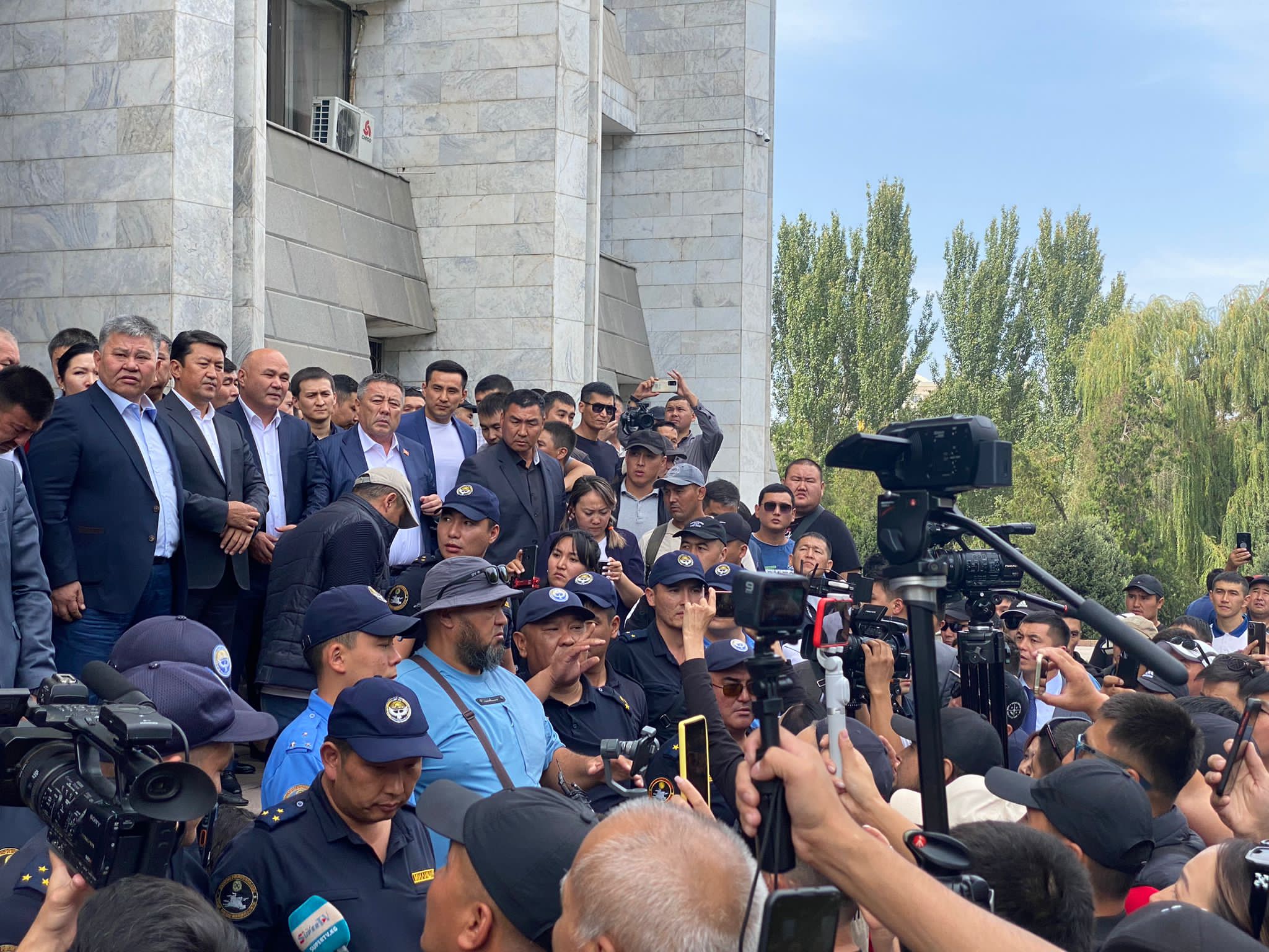 Он выступил перед собравшимися возле Белого дома. Около 100 человек требуют решить вопрос границ. Президент Жапаров в настоящее время находится в Самарканде (Узбекистан), где принимает участие в саммите ШОС.