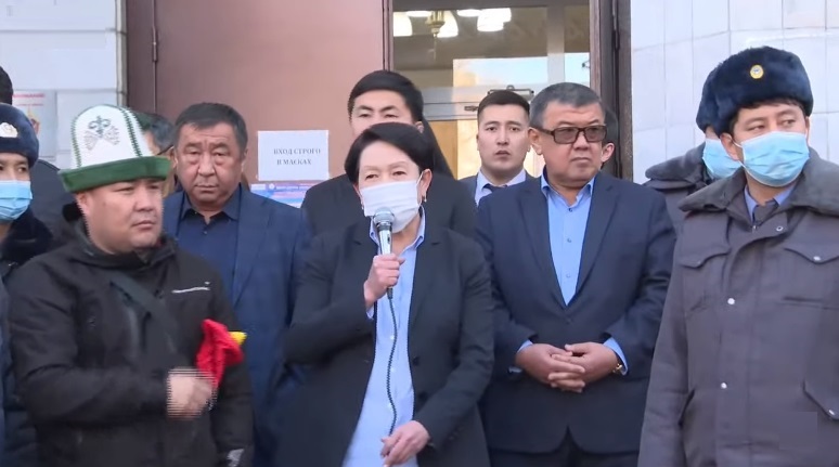 Председатель Центральной комиссии по выборам и проведению референдума КР Нуржан Шайлдабекова вышла к собравшимся у здания ЦИК в Бишкеке представителям и кандидатам партий, которые не смогли преодолеть пятипроцентный порог на выборах в парламент. Шайлдабекова извинилась за вчерашний сбой в работе таблицы информационной избирательной системы.