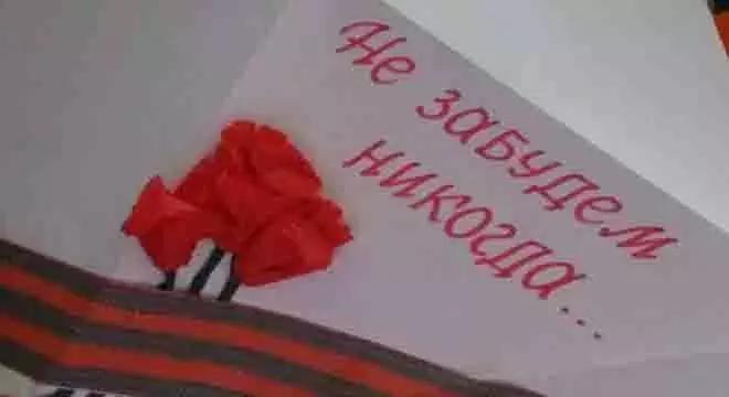 Он взял удостоверение ветерана труда и 9 Мая отправился на праздник с сыном. На мероприятии ему вручили конверт в форме фронтового треугольника с гвардейской лентой, гвоздикой и фразой "Не забудем никогда!".