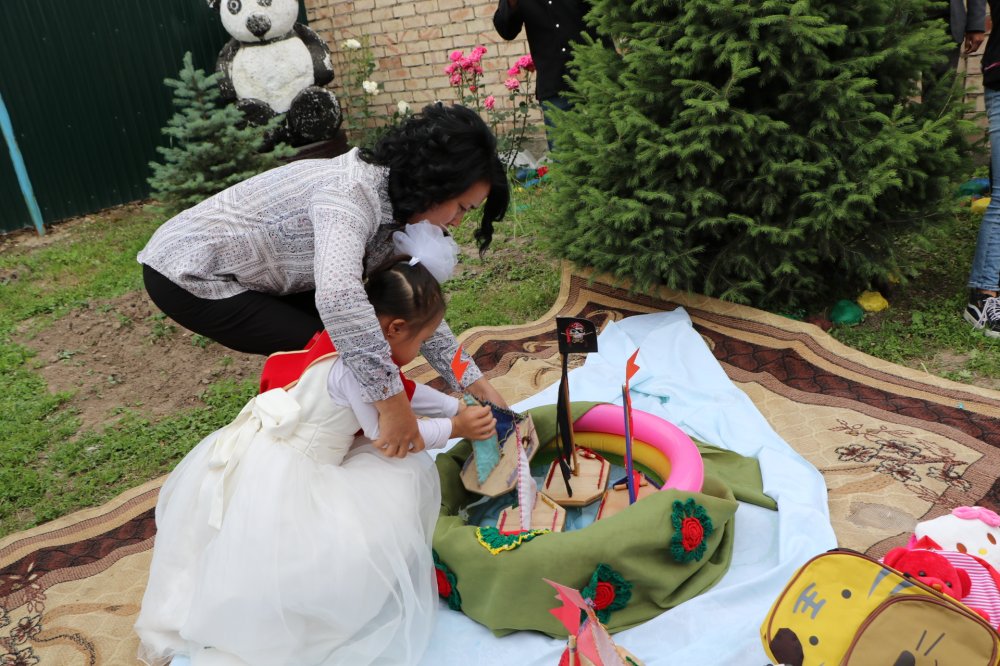 На такой трогательный и значимый праздник сотрудники Кыргызпатента пришли не с пустыми руками, из личных средств сотрудников ведомства было собрано более 25000 сомов. Эти денежные средства переданы на реконструкцию ограждения реабилитационного центра. Статс-секретарь Кыргызпатента Талант Конокбаев, от имени коллектива ведомства пожелал ребятам счастья и успехов в дальнейшей учебе. Кроме того, сотрудники ведомства передали центру игрушки и детские вещи, которые были собраны сотрудниками Кыргызпатента специально к торжественному вечеру.
