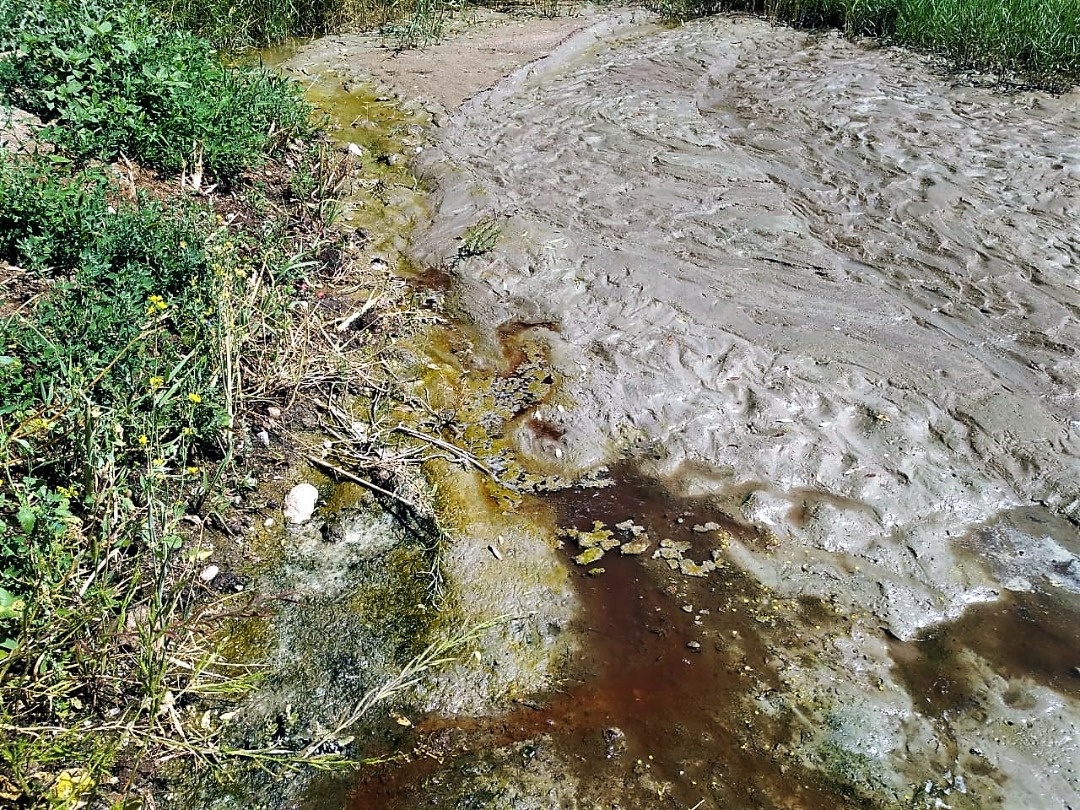 Из-за недавнего разлива речки, отходы попали воду.