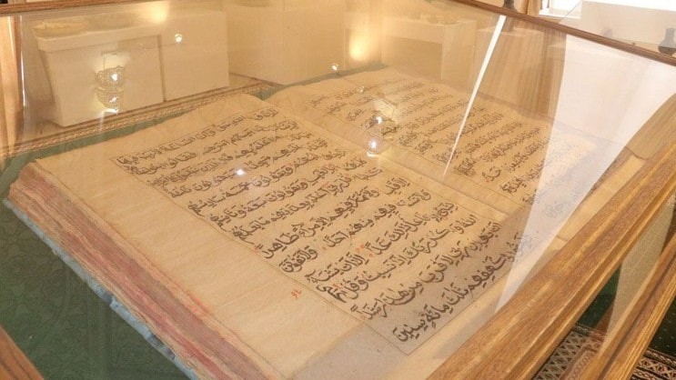 Украденная копия Священного Корана была изготовлена из шелка и была завершена в 1874 году. Книга была 74 сантиметра в высоту, 51 сантиметр в ширину и 12 сантиметров в толщину. На каждой странице 426-страничной книги написано 13 строк аятов.