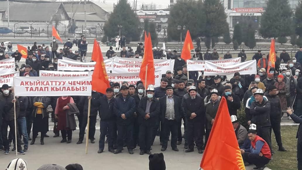 В Оше митингуют в поддержку Райымбека Матраимова. Видео акции публикуют в социальных сетях.