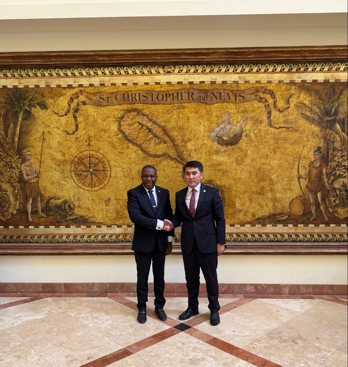 В ходе встречи с Премьер-министром Сент-Киттс и Невис Терренсем Дрю были переданы поздравления от имени Президента Кыргызстана С.Н.Жапарова в связи с принятием председательства в КАРИКОМ и проведением юбилейного 50-го заседания Конференции Глав правительств стран-участниц КАРИКОМ в столице страны городе Бассетере.