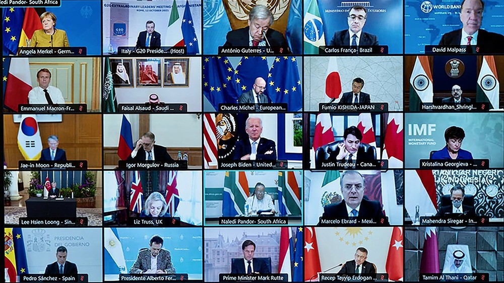 Президент США Джо Байден, премьер-министр Индии Нарендра Моди и многие европейские лидеры присоединились к онлайн-саммиту, который состоялся, когда талибы провели свои первые личные переговоры с делегацией США и ЕС в Катаре. Председатель Китая Си Цзиньпин и президент России Владимир Путин отправили своих представителей. Драги сказал, что отсутствие двух лидеров не умаляет важности встречи, организованной Италией, нынешним председателем G20.