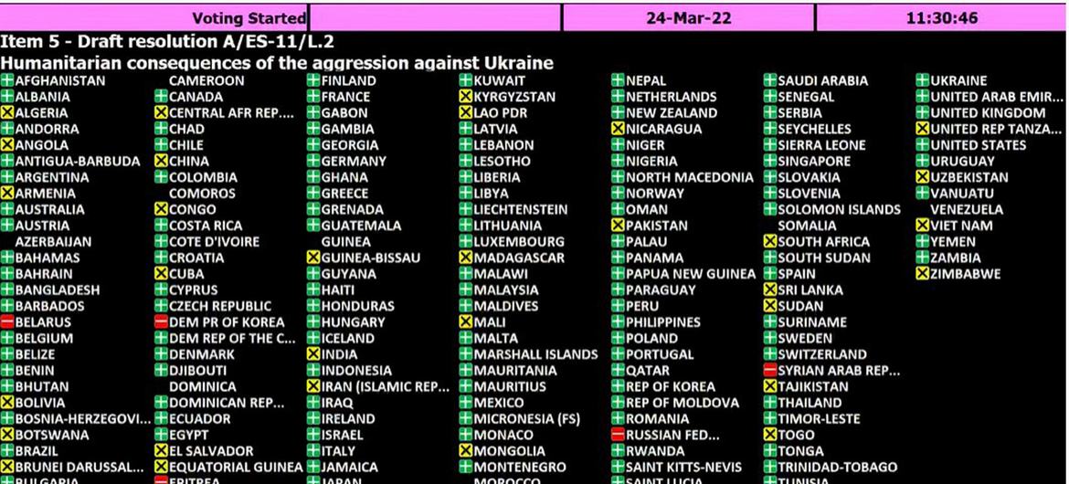 Голосование в Генеральной Ассамблее совпало с мрачной вехой – война в Украине продолжается ровно месяц.