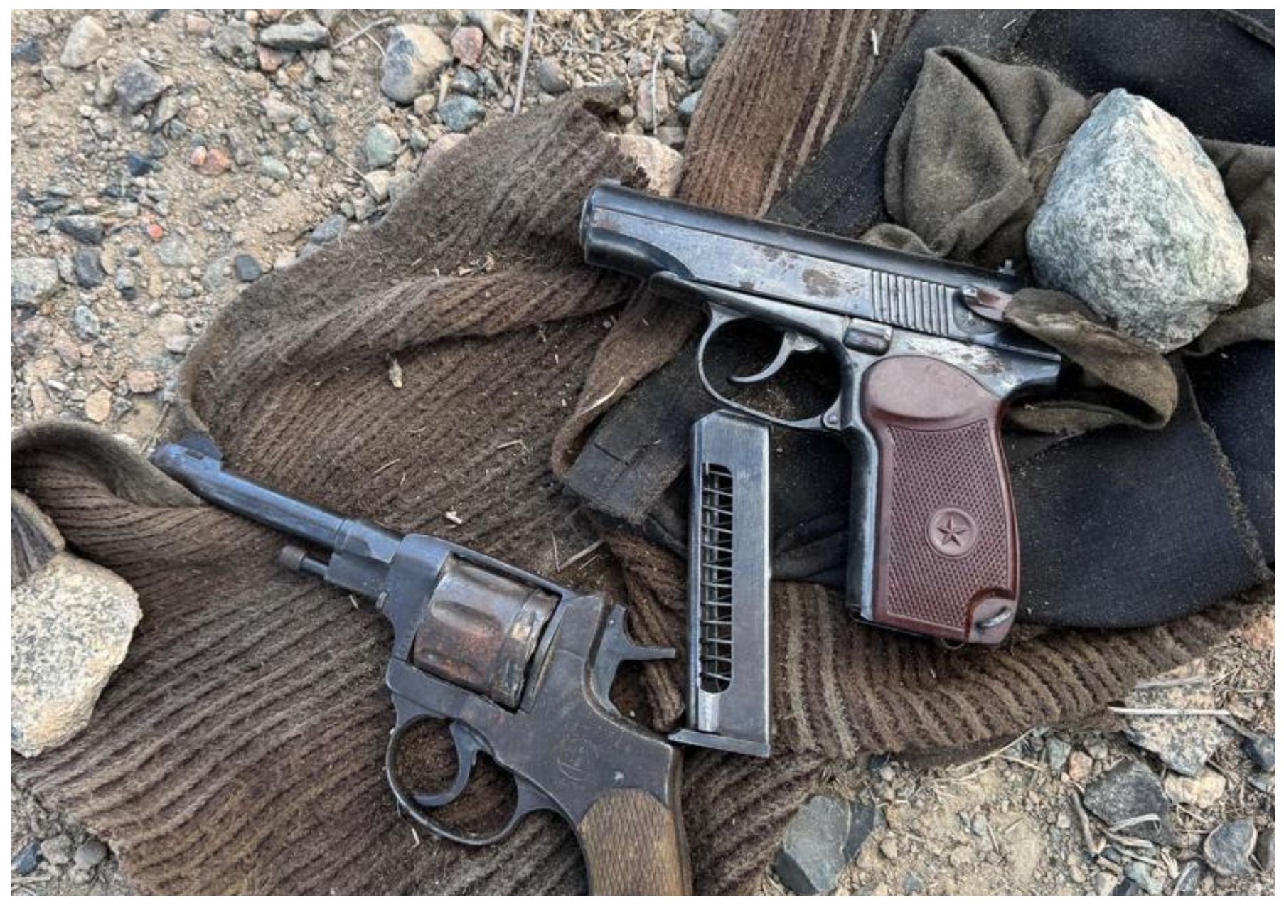 В результате проведенных оперативно-следственных мероприятий сотрудниками ГКНБ КР на окраине г.Балыкчы Иссык-Кульской области обнаружен тайник с огнестрельными оружиями в виде пистолетов «Макарова» и «Револьвера» по одной единице.