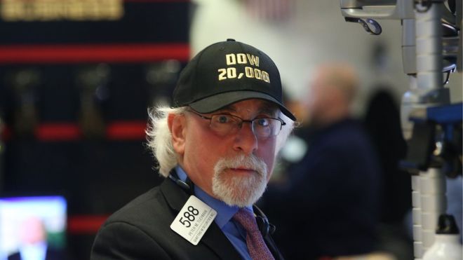Всего месяц назад на Dow Jones праздновали преодоление рубежа в 20 000 пунктов. Индекс Dow Jones - основной показатель деловой активности в США - впервые в истории превысил 21000 пунктов. Это произошло после первого выступления Дональда Трампа в конгрессе США, которое состоялось накануне.