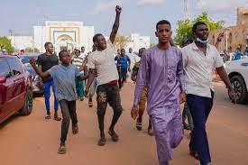 30 июля протестующие в Нигере устроили поджог здания посольства Франции — дверь ведомства была охвачена огнем, силы полиции сдерживали толпу, не давая ворваться внутрь. Участники акции сорвали табличку посольства с ворот здания. Демонстранты заявили о своей поддержке захвативших 26 июля власть в стране военных. Сторонники военных вышли на митинг с российскими флагами.