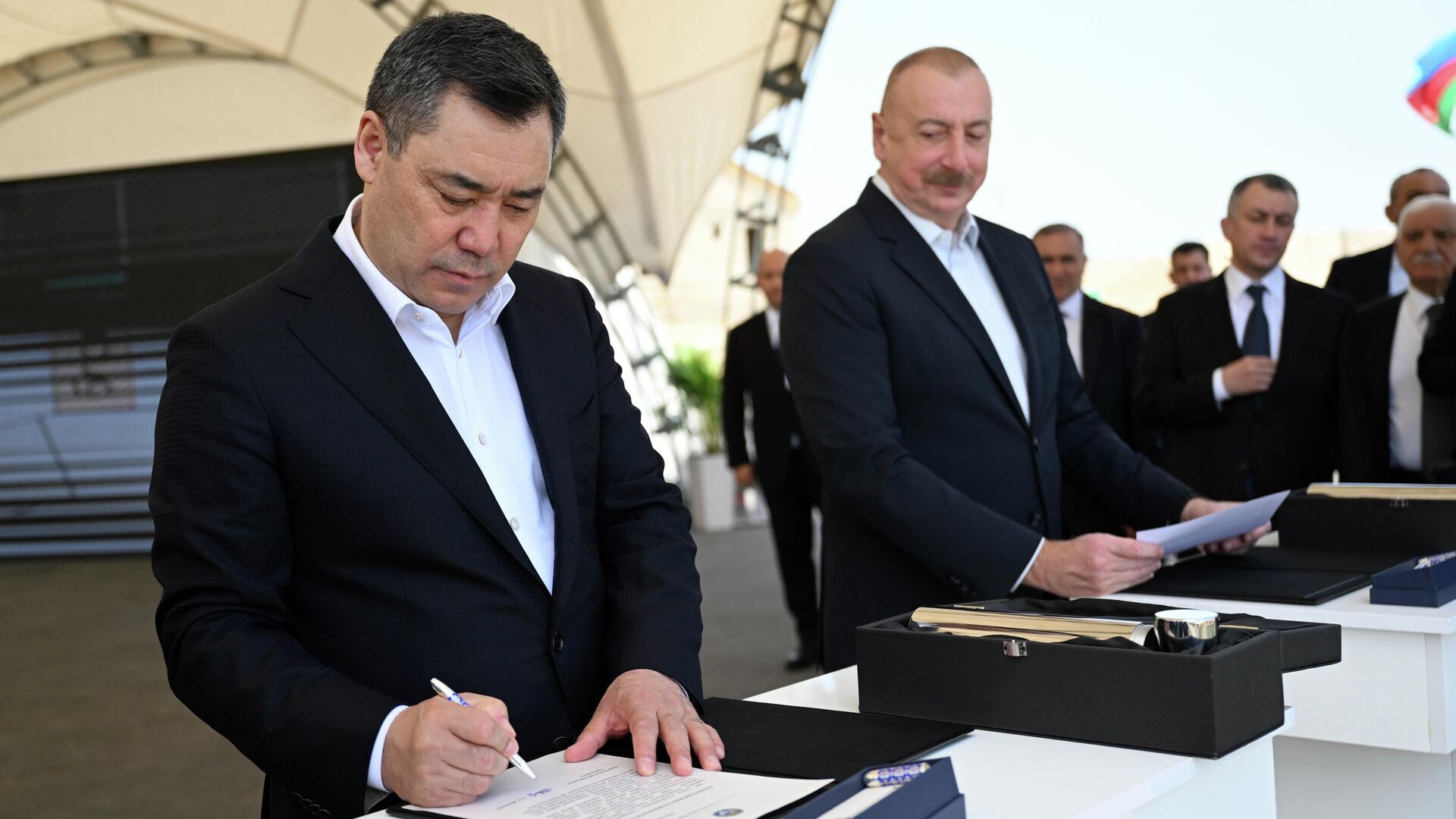 Президент Кыргызстана Садыр Жапаров и глава Азербайджана Ильхам Алиев сегодня, 25 апреля, приняли участие в торжественной церемонии закладки капсулы времени в основание будущей средней школы в местности Хыдырлы, сообщает пресс-служба главы государства.