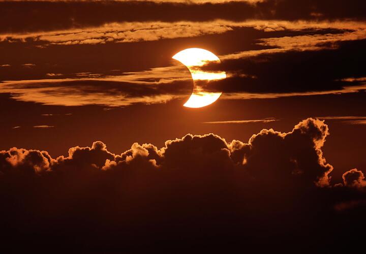 Кыргызстанцы смогут увидеть сегодня частичное солнечное затмение. Луна закроет солнечный диск почти на 70%. Над Бишкеком затмение начнется в 16:25 и достигнет максимума в 17:34.