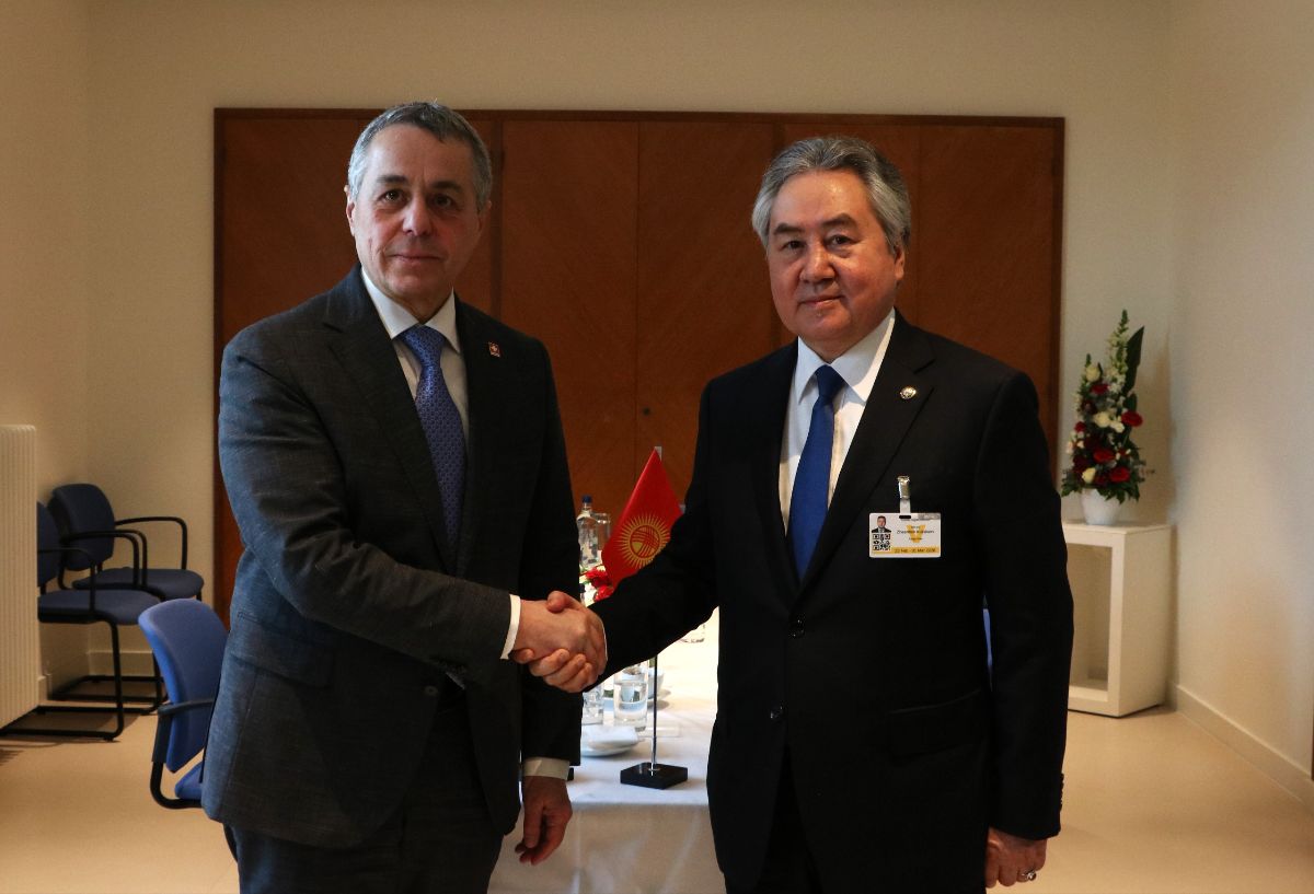 23 февраля 2026 года в г. Женеве на полях Сегмента высокого уровня 61-й сессии Совета ООН по правам человека Министр иностранных дел Кыргызской Республики Жээнбек Кулубаев провел встречу с Главой Федерального департамента иностранных дел Швейцарской Конфедерации Иньяцио Кассисом.