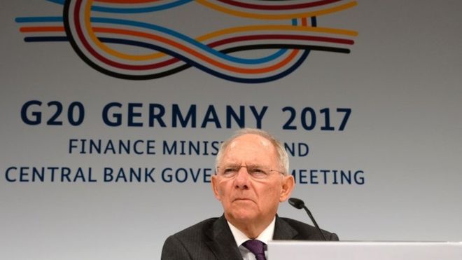 Министр финансов Германии Вольфганг Шойбле, сказал, что переговоры по этим вопросам зашли в тупик, и что он и его коллеги не могли заставить партнеров - то есть Соединенные Штаты - одобрить слова, с которыми те не согласны.