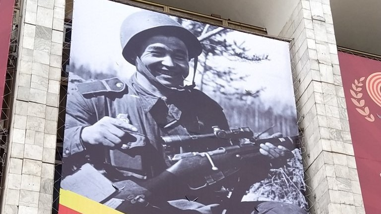 Вместо этого изображения на площади появилось фото солдата азиатской наружности, предположительно бурята, и пользователи соцсетей вновь стали высмеивать мэрию, что она "не нашла в поисковике фото с кыргызами". А уже сегодня в Сети появилось новое фото с площади, которое якобы мэрия вывесила после негативных комментариев.