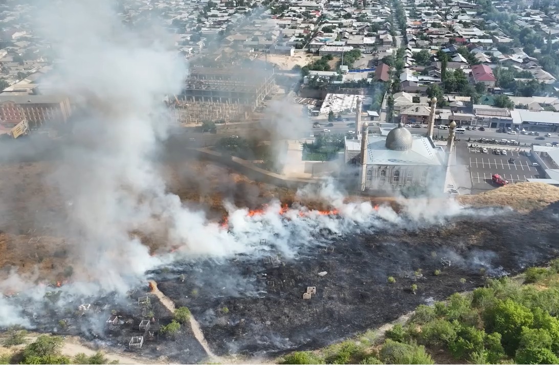 Сгорело кладбище, огонь едва не добрался до центральной мечети Оша