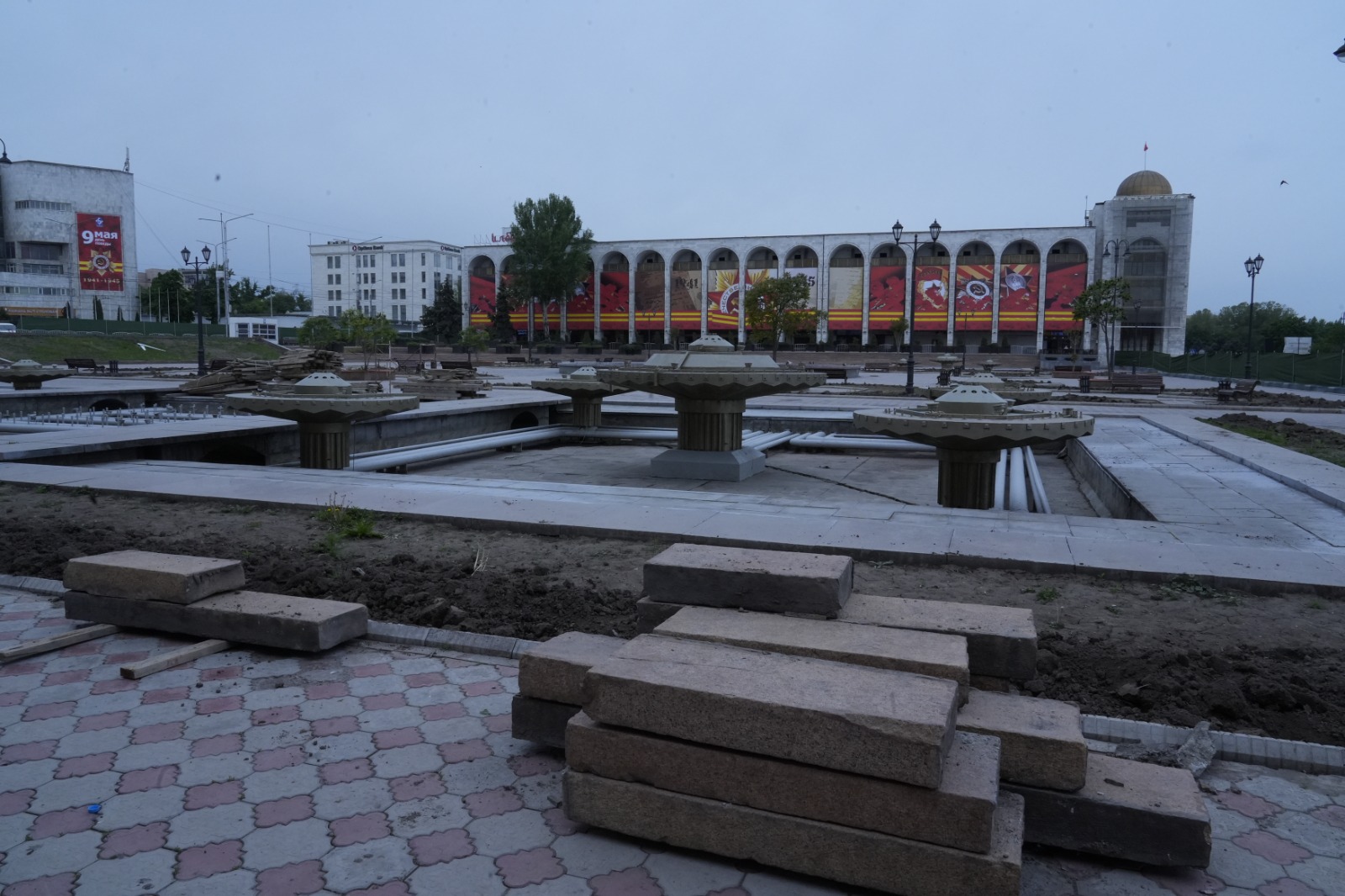 На площади Ала-Тоо в Бишкеке демонтировали флагшток и кабинку почетного караула.