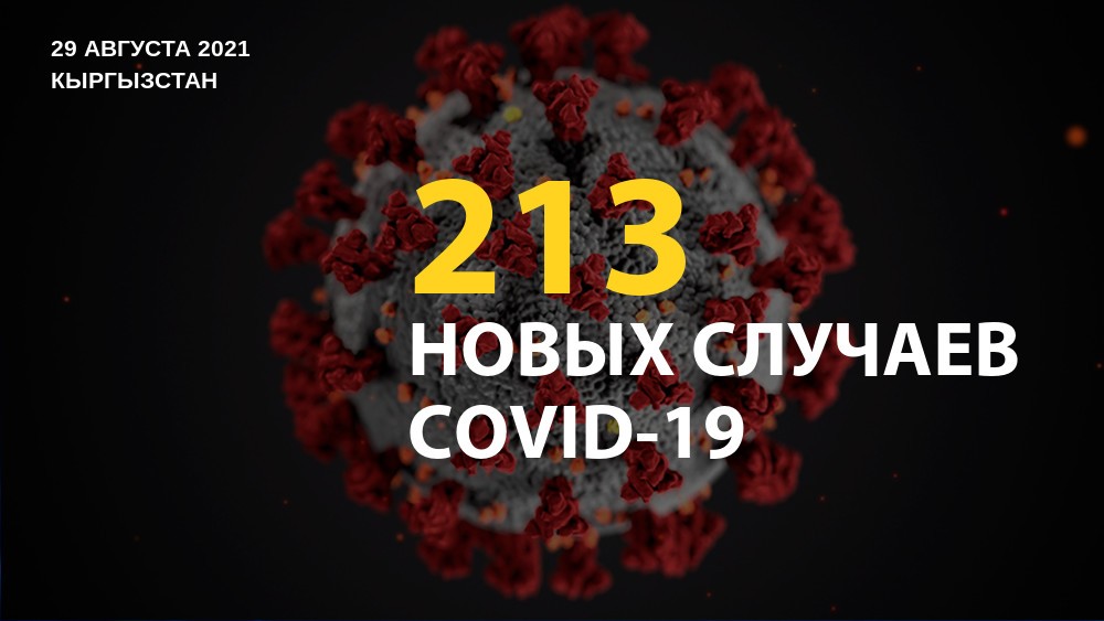 В Кыргызстане на утро 29 августа зарегистрировано 213 новых случаев COVID-19. Об этом сообщил штаб по борьбе с коронавирусом.