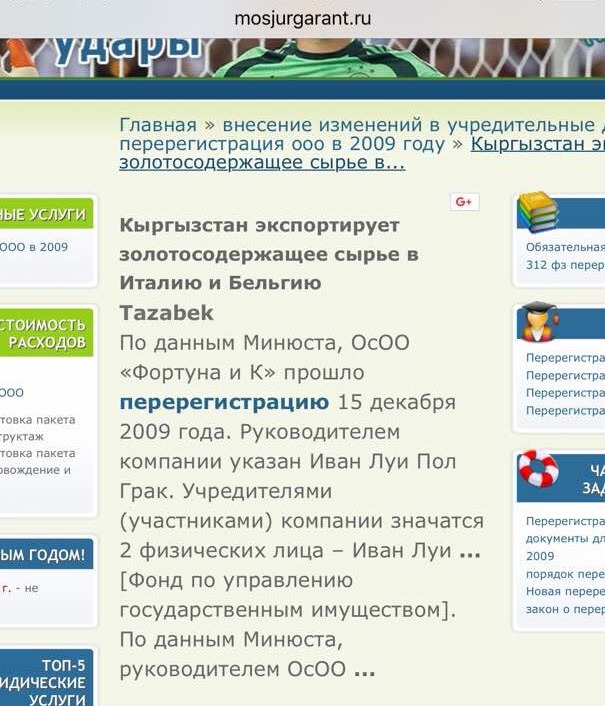 Также Иван Грак занимается скупкой незаконно добытых золотосодержащих концентратов с села Эмгекчил Нарынской области и Чаткальского района и путём якобы переработки руды из своего месторождения Куранды-жайлоо легализует данный концентрат и вывозит за рубеж.