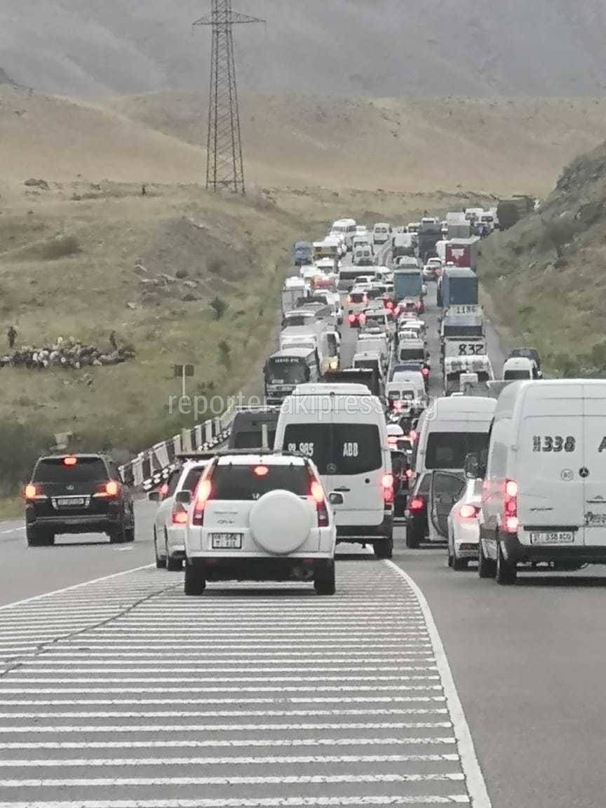 На этих выходных на трассе из Чолпон-Аты в Бишкек образовалась многокилометровая пробка. Некоторые водители выехали на полосу встречного движения.