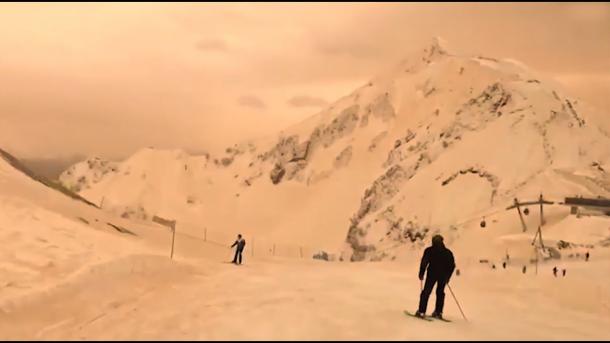В Сочи выпал снег необычного цвета. Посетители горнолыжного курорта «Роза Хутор» опубликовали в социальных сетях фото оранжевого снега, который выпал в горах на Красной поляне.