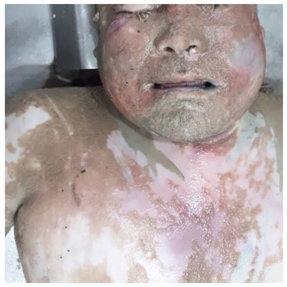 Особые приметы: рост: 175-180 см, среднего телосложения, волосы черные, короткие, лицо овальное, густые брови. При осмотре неопознанного трупа мужчины, установлено, что на нем были одеты - черная футболка с бордовым воротником, размер XXL, пуговица фиолетового цвета, также спортивная кофта темно-синего цвета с надписью HAOTIAN с центральным замком, манжетная резинка, лисичка карман на замке, черные носки.