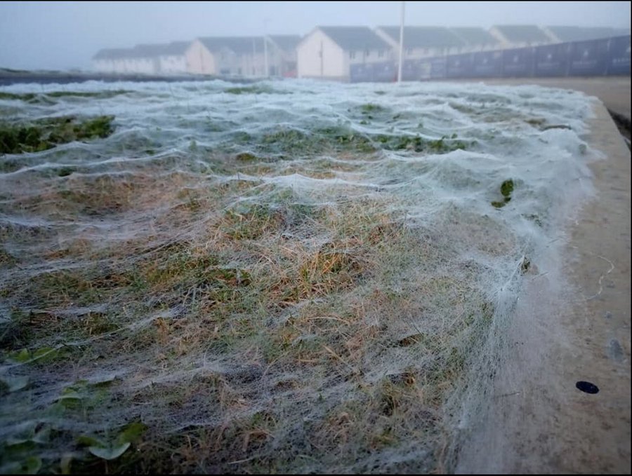 Оказалось, что газон плотно оплетен паутиной. Лео, который никогда не видел ничего подобного, снял это необычное явление на камеру и затем опубликовал на Facebook в группе, посвященной Абердинширу.