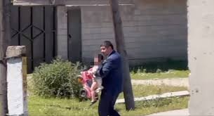 Маленький ребенок в подгузнике неожиданно выехал на основную скоростную трассу. В этот момент мимо проезжал чиновник, который остановил машину и своевременно перехватил малыша до возможного ЧП.