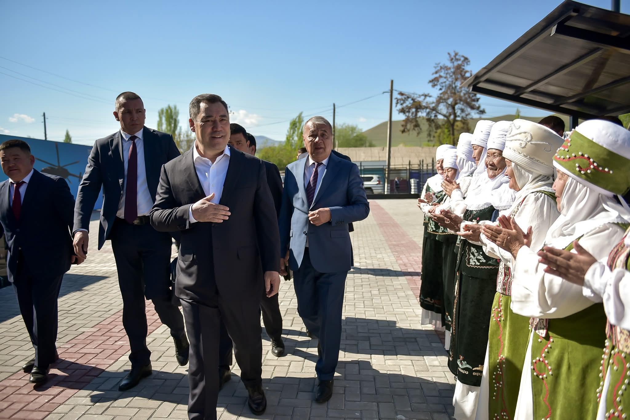 Президент Садыр Жапаров сегодня, 14 апреля, в ходе рабочей поездки в Ошскую область принял участие в церемонии открытия общественно-культурного центра в с. Кара-Кульджа.