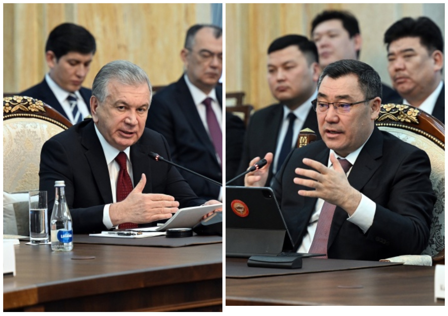 Уважаемые члены делегации Республики Узбекистан, Еще раз сердечно приветствую Вас в Бишкеке. Нам доставляет огромное удовольствие встречать Вас с государственным визитом на нашей гостеприимной земле.