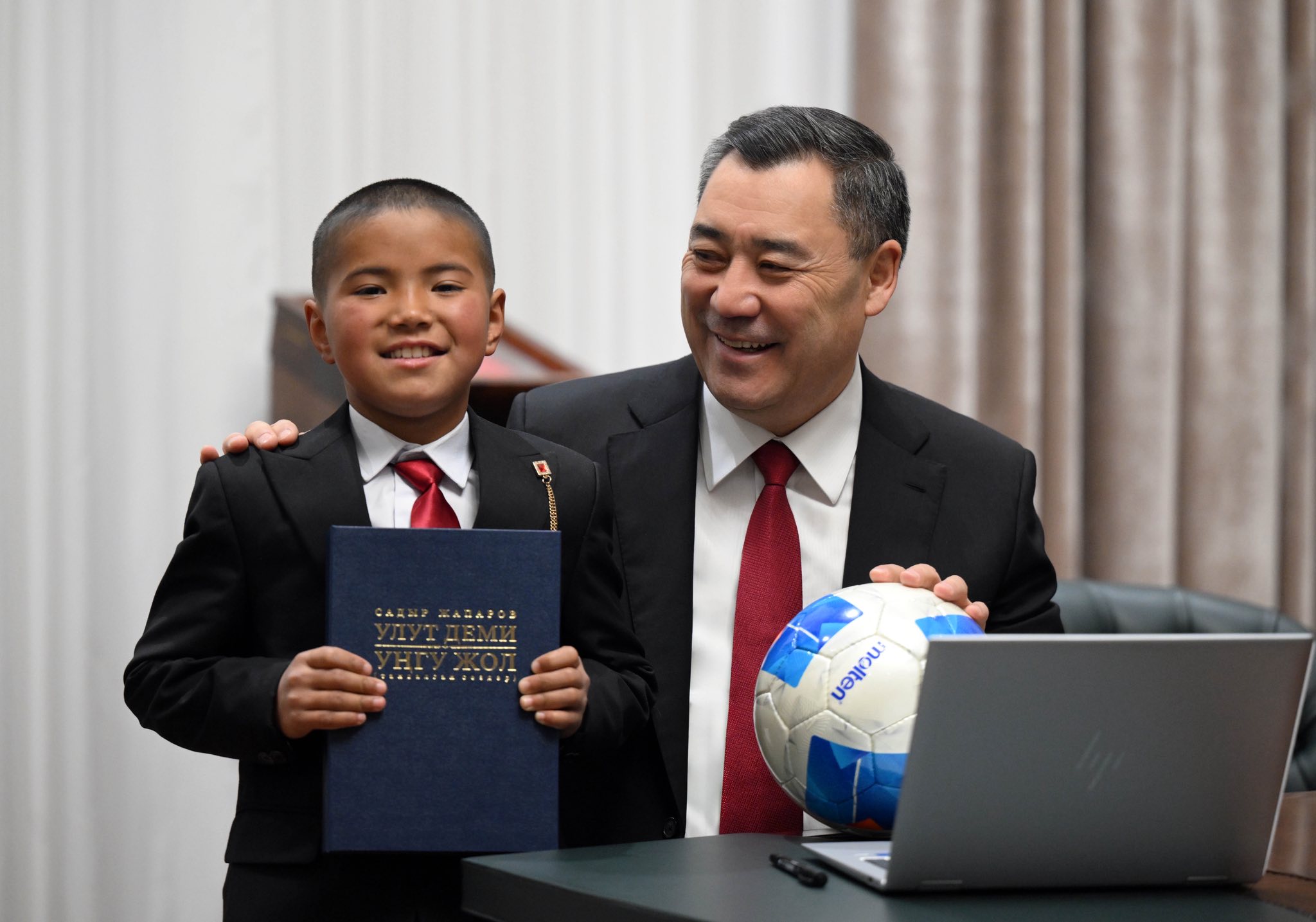 Президент Кыргызской Республики Садыр Жапаров сегодня, 17 декабря, принял Нурзамана Алмазбекова, ученика четвертого класса начальной школы «Айдын-Кол», расположенной в селе Коо-Чаты Кара-Кулжинского района Ошской области.