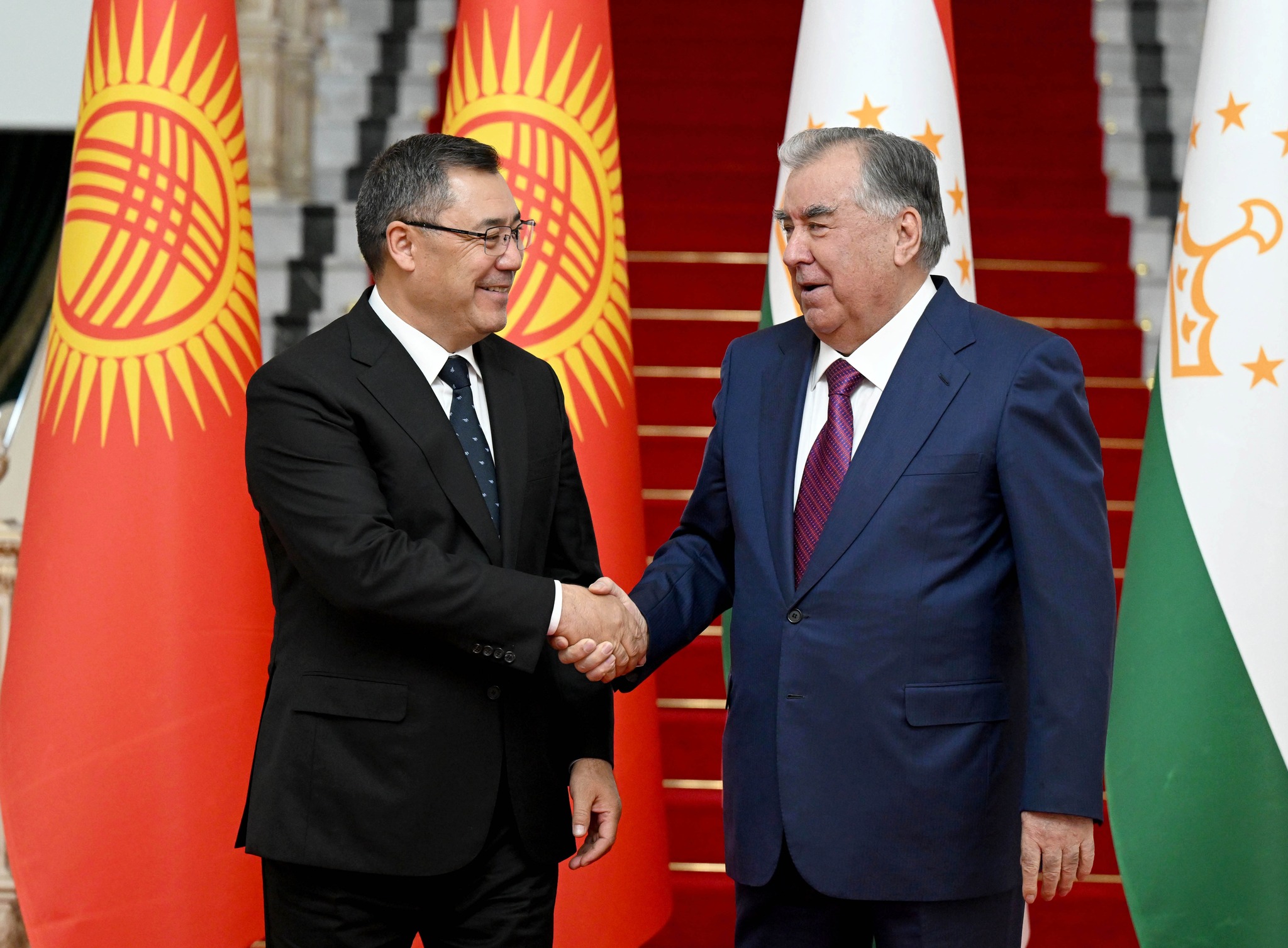 Президент Таджикистана Эмомали Рахмон тепло поприветствовал Президента Садыра Жапарова, подчеркнув позитивную динамику двустороннего сотрудничества.