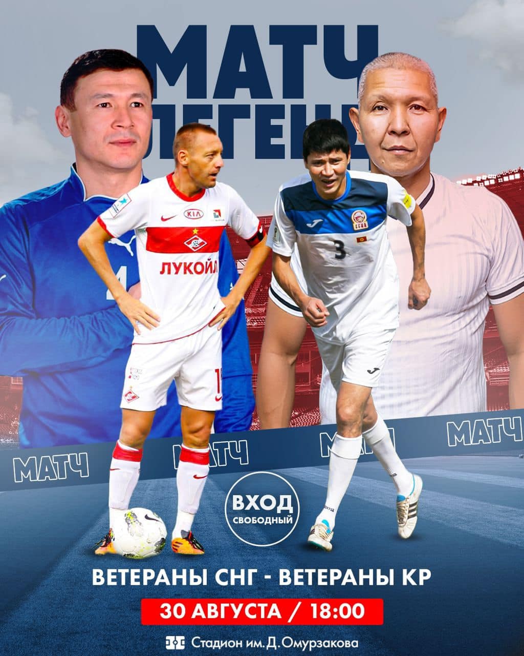Глава государства завтра выйдет на поле в составе сборной ветеранов Кыргызстана против команды ветеранов футбола стран СНГ. В команде звёзд СНГ сыграют Ринат Дасаев, Дмитрий Аленичев, Александр Азимов, Егор Титов, Хорен Оганесян, Марат Кабаев, Мухсин Мухамадиев, Евгений Алдонин, Эрик Яхимович и другие. Матч посвящен Дню независимости Кыргызстана. Зрителей ждёт концертная программа, сам матч начнётся в 20:00. Вход свободный.