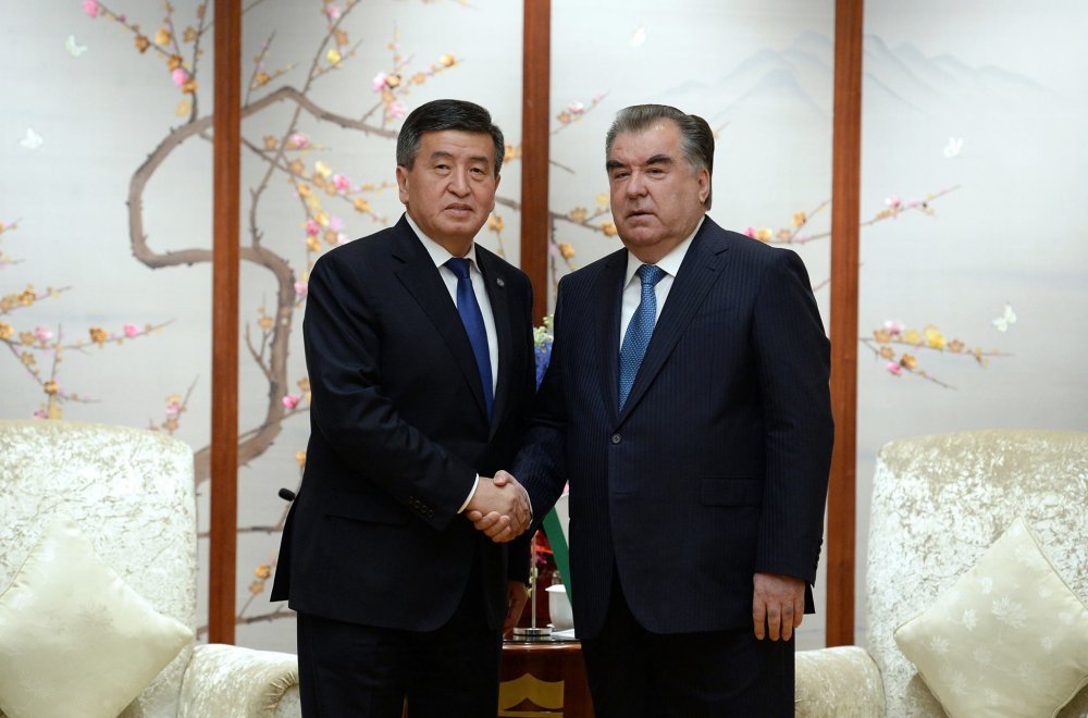 Президент Кыргызской Республики Сооронбай Жээнбеков сегодня, 9 июня, в г. Циндао Китайской Народной Республики на полях Совета глав государств-членов Шанхайской организации сотрудничества встретился с Президентом Республики Таджикистан Эмомали Рахмоном.