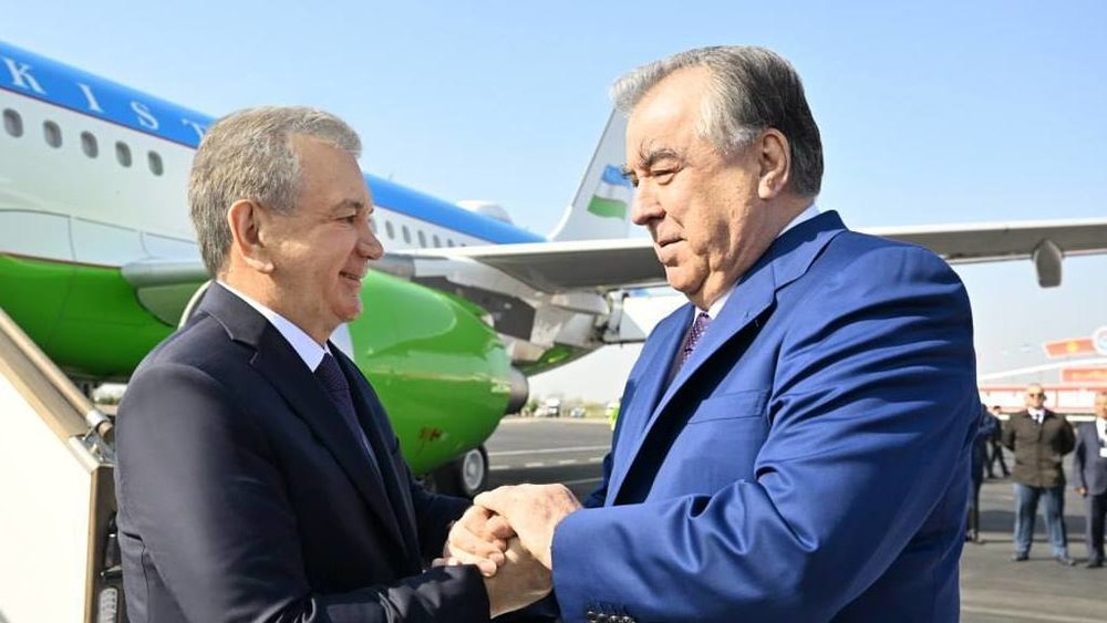 Президент Узбекистана Шавкат Мирзиёев прибыл с рабочим визитом в город Худжанд. В аэропорту его встретил президент Таджикистана Эмомали Рахмон.