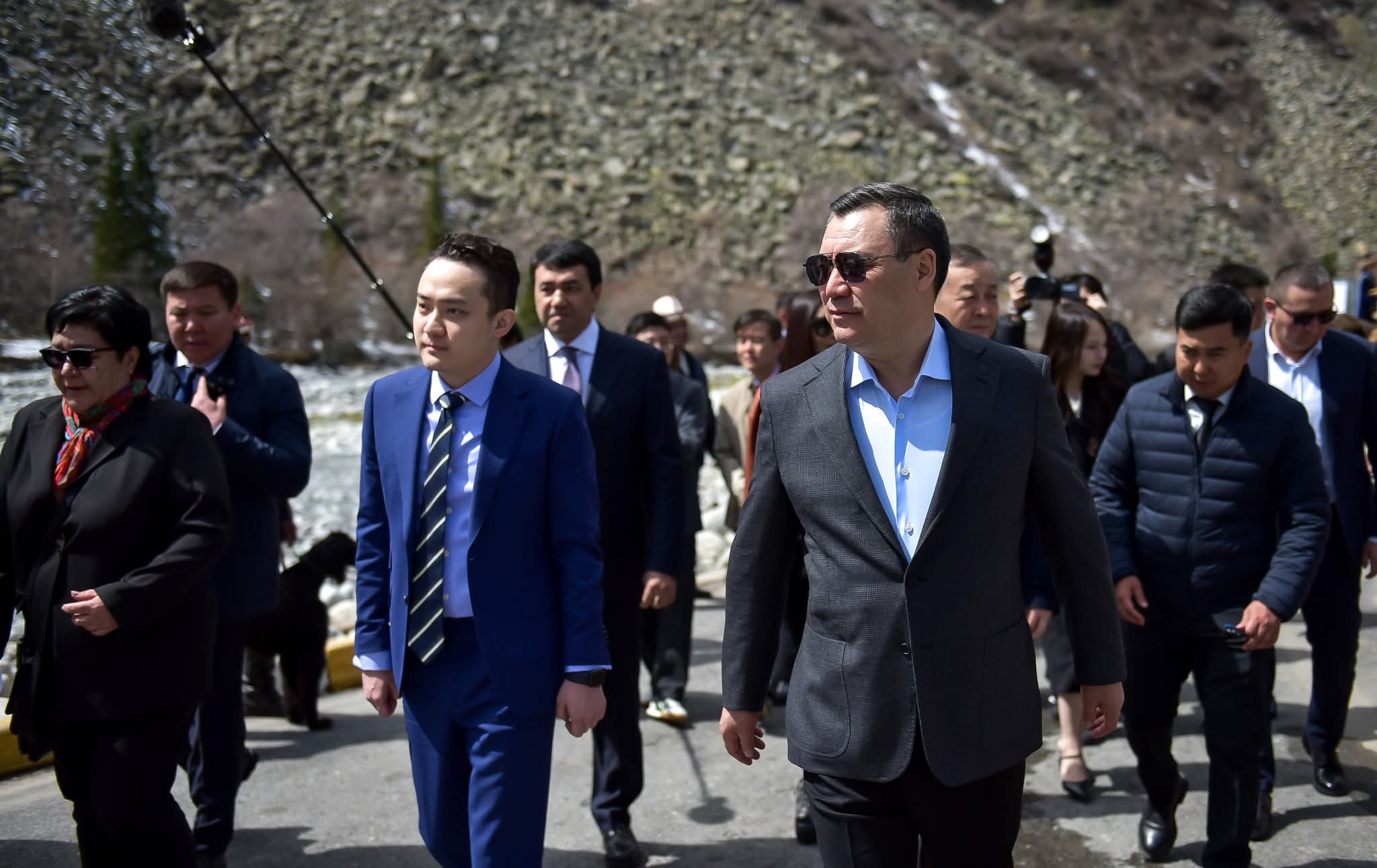 Президент Садыр Жапаров и основатель блокчейн-платформы TRON Джастин Сан сегодня, 18 апреля, ознакомились с этно-культурной программой в Государственном природном парке «Ала-Арча».