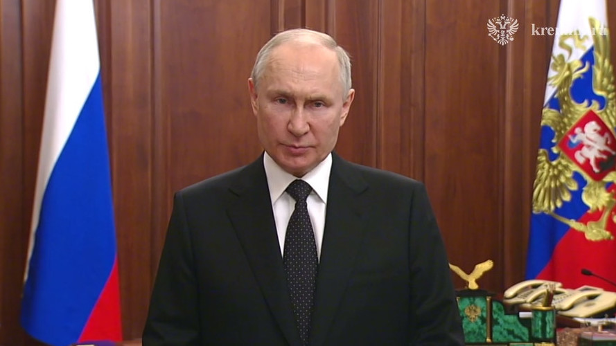«Обращаюсь к гражданам России, к личному составу Вооружённых Сил, правоохранительных органов и специальных служб, к бойцам и командирам, которые сейчас сражаются на своих боевых позициях, отбивают атаки противника, делают это героически – знаю, сегодня ещё раз ночью говорил с командующими всех направлений. Обращаюсь и к тем, кого обманом или угрозами втянули в преступную авантюру, толкнули на путь тяжкого преступления – вооружённого мятежа.