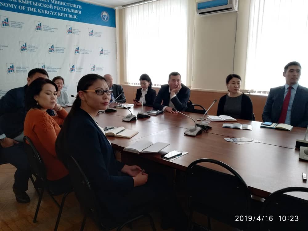 16 апреля 2019 года, в Министерстве экономики Кыргызской Республики прошла встреча руководителей структурных подразделений министерства с представителями ОАО «Государственная страховая организация»: Рустамбеком Тагаевым, директором филиала по Чуйской области и г. Бишкек, Эммой Белецкой, страховым агентом.