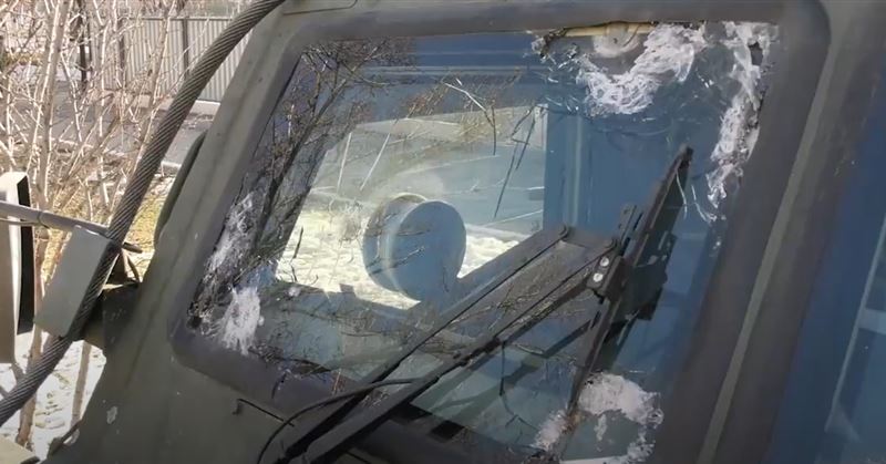 Кабина бронеавтомобиля "Арлан" после засады террористо