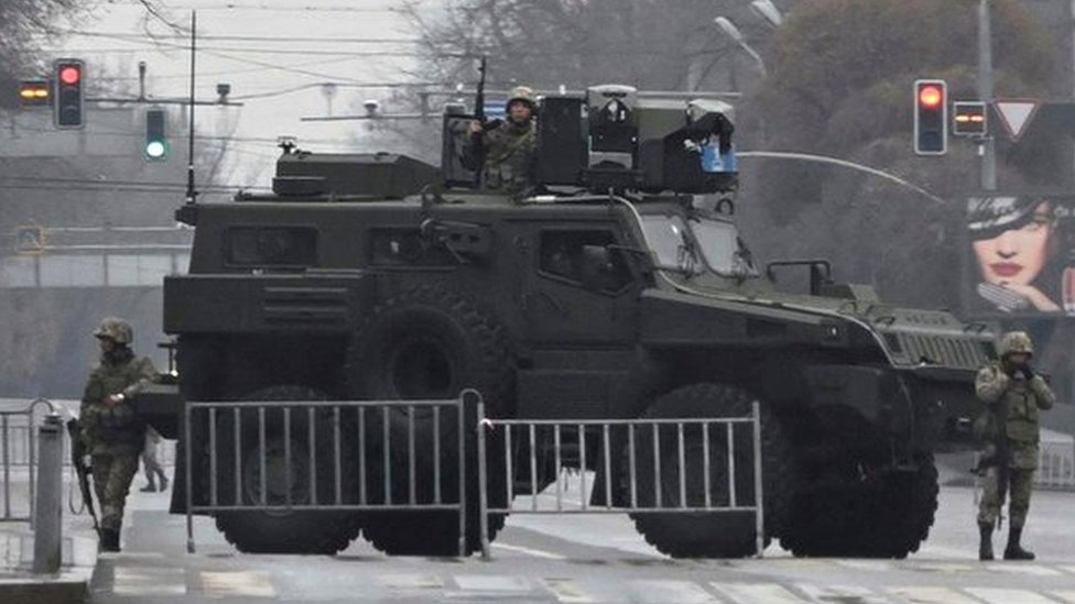 Бронеавтомобиль "Арлан" во время январских событий 2022 года в Алматы.