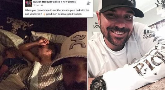 Американец Дастон Холлоуэй из города Эмори (Техас) попал на первые полосы мировых таблоидов после публикации нескольких фото в своем Facebook. Мужчина неожиданно вернулся из командировки домой и застал свою девушку, спящую в компании любовника. Однако личную драму он воспринял с юмором, сделав несколько снимков из спальни и даже селфи на фоне ничего не подозревающей парочки, пишет The Sun. "Когда приходишь домой и видишь рядом с женщиной, которую любил, другого мужчину! Хорошие мужчины заслуживают хороших женщин", - подписал он фотографии. Дастон признался, что сначала хотел пнуть незнакомца. Но затем схватил смартфон и начал спокойно снимать. "Попытался разбудить девушку, но она была слишком пьяна. Хотел спросить ее, какой завтрак приготовить этому парню ", - пошутил он.