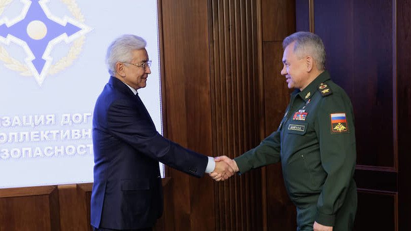 Министр обороны России Сергей Шойгу провел встречу с генеральным секретарем Организации Договора о коллективной безопасности (ОДКБ) Имангали Тасмагамбетовым. Как уточнили в пресс-службе оборонного ведомства, Шойгу и Тасмагамбетов обсудили вопросы развития военной составляющей организации, а также совершенствования ее силового потенциала.