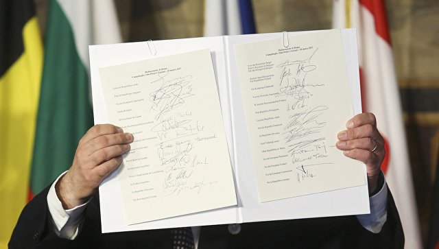 Документ подписан в субботу лидерами 27 стран-членов ЕС, которые останутся в союзе после выхода Великобритании.